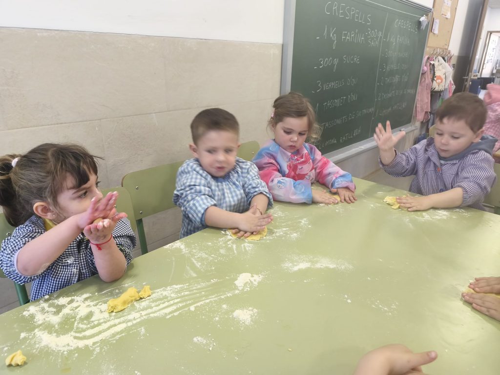- Taller de Crespells: L’escola va començar a fer olor de dolç mentre apreníem a elaborar aquesta recepta tan nostra.